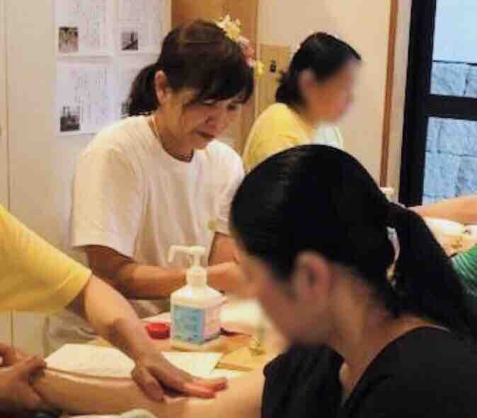職員さんのハンドマッサージ