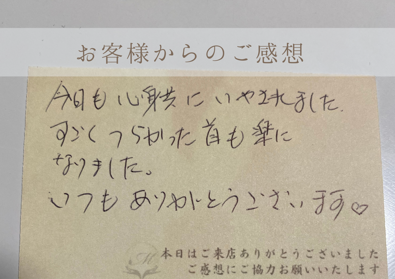 すごくつらかった首も楽になりました。